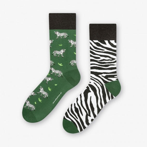 Motyw zebry, który stanowi centralny element tej kolekcji, skłania do refleksji nad jedną z najciekawszych zagadek natury: czy zebra jest biała w czarne paski, czy czarna w białe cętki? Choć nie ma jednoznacznej odpowiedzi na to pytanie, możemy być pewni, że nasze skarpety z pewnością przyciągną wzrok i wywołają uśmiech na twarzy każdego, kto je zobaczy.