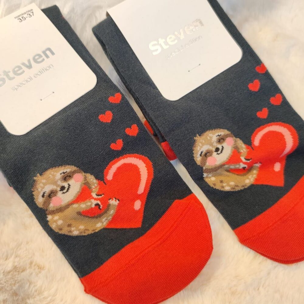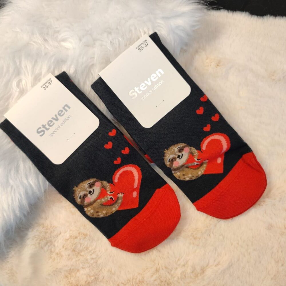 Skarpetki Damskie z Motywem Serduszek i Leniwca – Idealny Walentynkowy Prezent