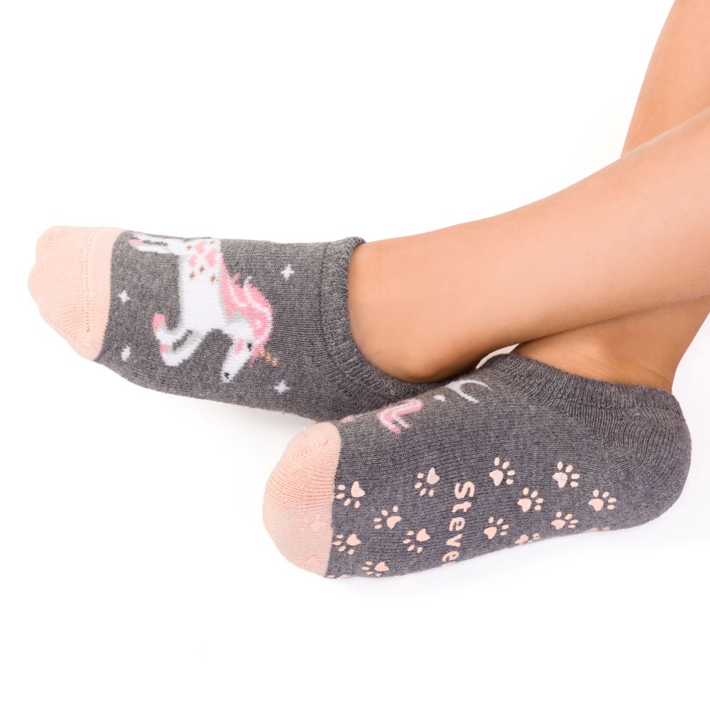Jednym z kluczowych atutów tych skarpetek jest ich antypoślizgowy wzór umieszczony na spodzie. Dzięki specjalnym wypustkom, które zapobiegają ślizganiu się, dzieci mogą bez obaw biegać po gładkich powierzchniach, takich jak parkiety czy kafelki. To istotny element, który zwiększa bezpieczeństwo podczas nauki chodzenia oraz aktywności fizycznej. Dzieci w każdym wieku są pełne energii i ciekawości, dlatego ważne jest, aby mogły eksplorować otoczenie bez ryzyka upadków.