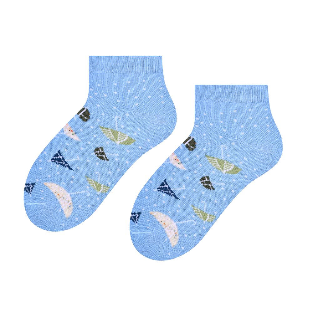 Nasze skarpetki w wzór parasolki to nie tylko praktyczny element garderoby, ale także atrakcyjny dodatek, który z pewnością ożywi każdą stylizację. Wzór ten jest kolorowy i radosny, co sprawia, że skarpetki będą doskonałym uzupełnieniem zarówno codziennych, jak i bardziej eleganckich outfitów. Doskonale komponują się z krótkimi spodenkami, spódniczkami, a także jeansami, co czyni je wszechstronnym elementem dziecięcej garderoby.